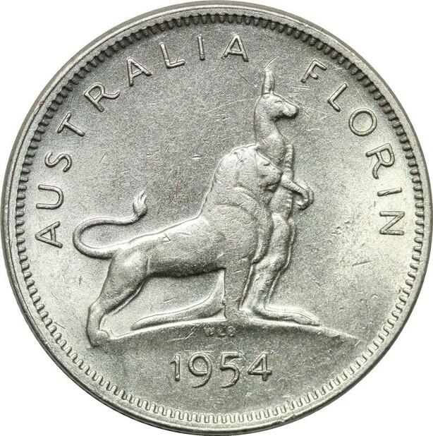 P4497 Australia Florin Elizabeth II 1954 Kangourou Silver ->Make offer