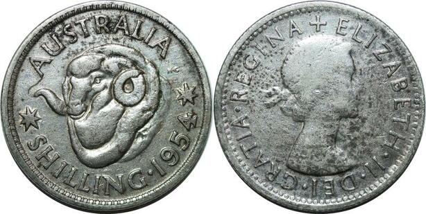 P4498 Australia Shilling Elizabeth II 1954 Silver ->Make offer