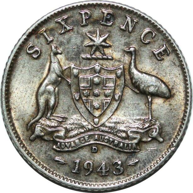 P4501 Australia 6 Pence George VI 1943 D Silver AU+++ ->Make offer