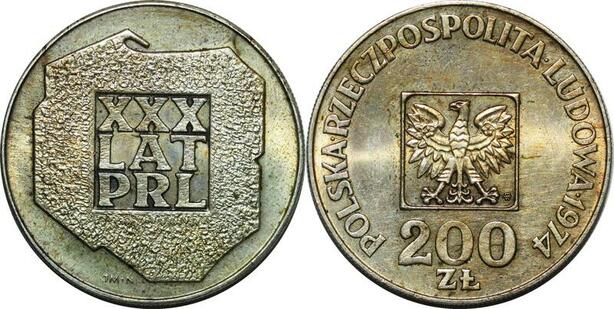 P4514 Poland 200 Zlotych 1974 Warsaw Silver AU -> Make offer