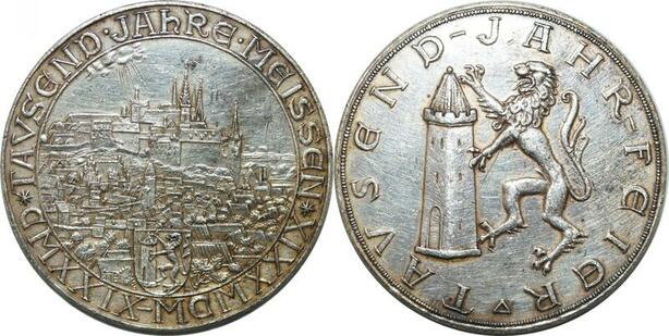 P4536 Rare Medal Germany Städte Meissen 1000 Jahrfeier Stadtansicht 1929 Silver