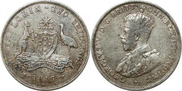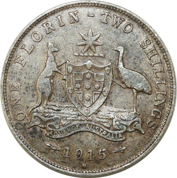 P4578 Rare Australia One Florin 2 Shillings 1915 H Silver -> Make offer