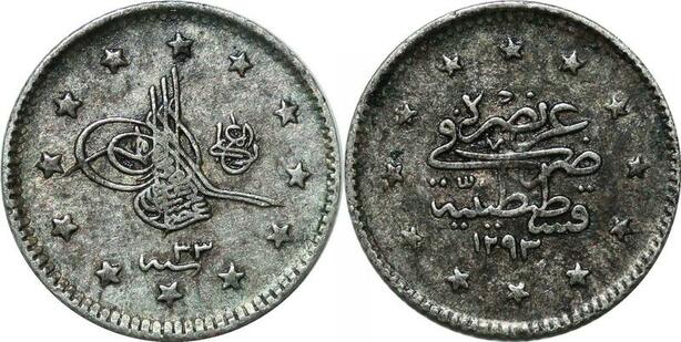 P4589 Ottoman Turkey Kuruş Abdul Hamid II el-Ghazi AH 1293 //23 1898 Silver