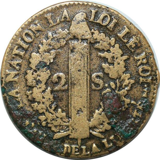 P4624 France 2 Sols au faisceau Louis XVI Francois 1792 AA Metz An 4 ->F offre