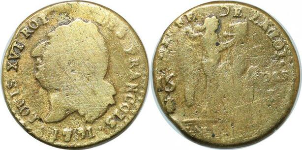 P4633 France Faux Epoque Constitution 15 Sols Louis XVI Francois 1791 I Limoges Laiton