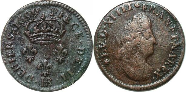 P4643 Rare France 2 Deniers Louis XIV 1699 BB Strasbourg ->Faire offre