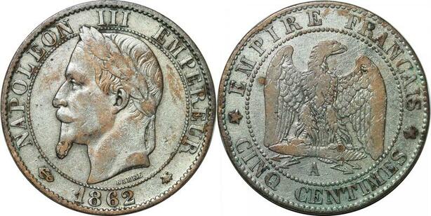 P4669 France 5 Centimes Napoléon III 1862 A Paris argentée -> Faire offre