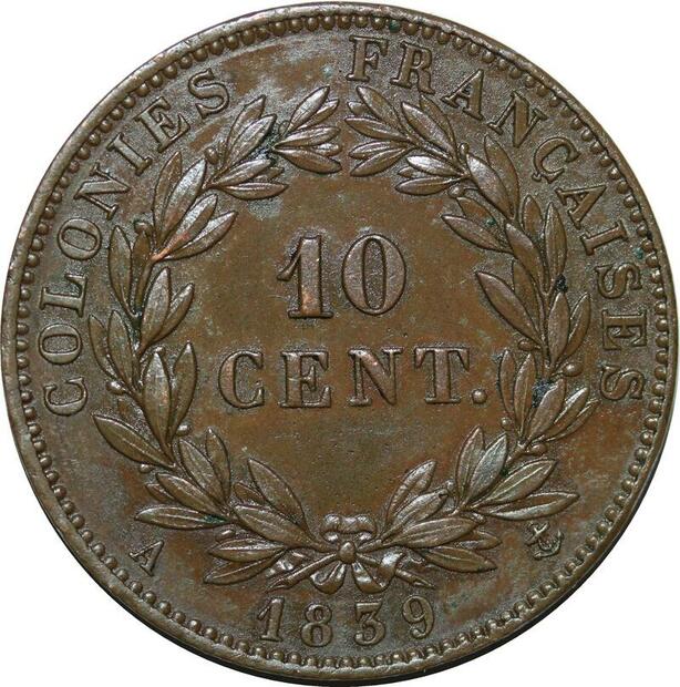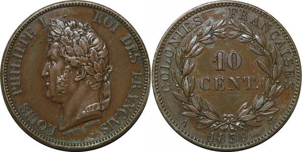 P4693 Rare Colonies Guadeloupe 10 Centimes Louis Philippe 1839 A Paris SPL