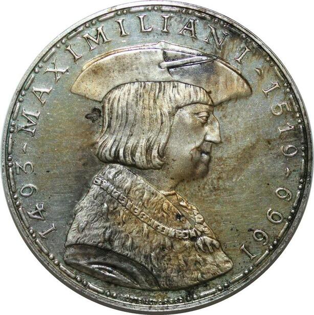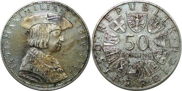 P4700 Austria 50 Schilling Maximilian I 1519 1969 Silver Proof ->Make offer
