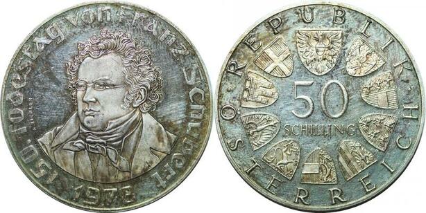 P4705 Austria 50 Schilling Franz Schubert 1978 Silver Proof ->Make offer