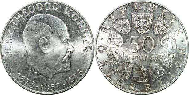 P4706 Austria 50 Schilling Dr. Theodor Körner 1973 Silver UNC ->Make offer