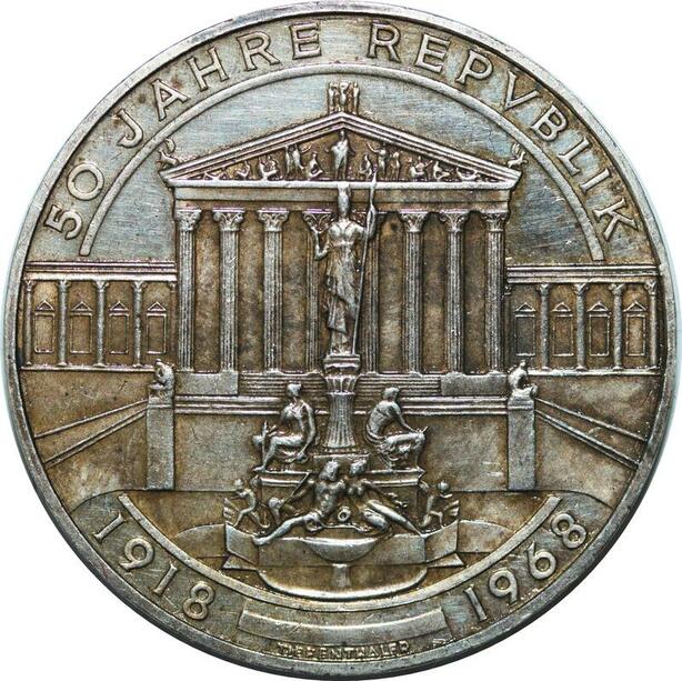P4709 Austria 50 Schilling 50 Jahre Republik 1918 1968 Silver Proof