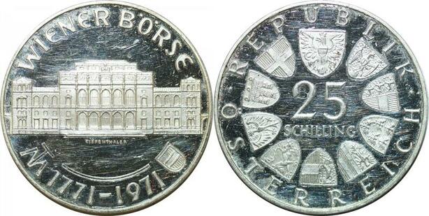 P4713 Austria 25 Schilling 250 Jahre Wiener Börse 1771 1971 Silver Proof