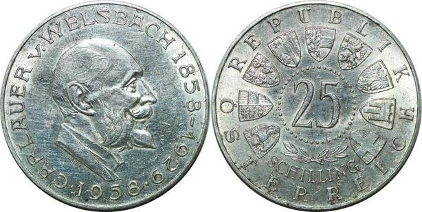 P4715 Austria 25 Schilling Auer von Welsbach 1958 Silver AU -> Make offer