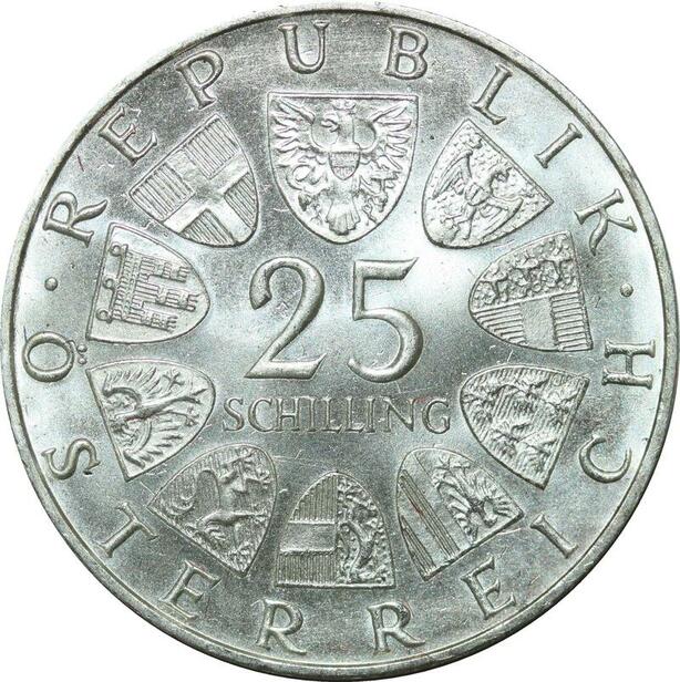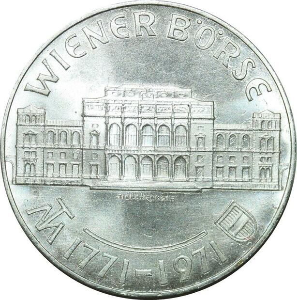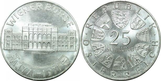 P4716 Austria 25 Schilling 250 Jahre Wiener Börse 1771 1971 Silver UNC