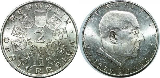 P4718 Austria 2 Schilling Dr. Ignaz Seipel 1876 1932 Silver UNC