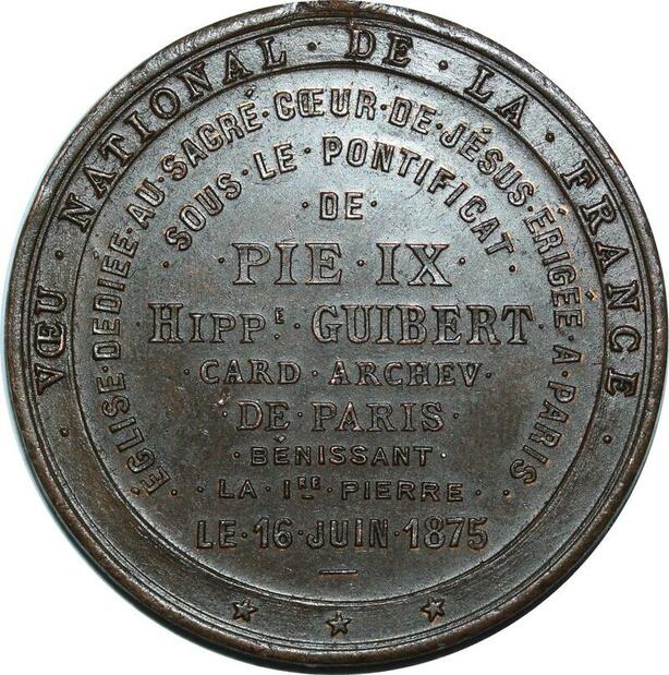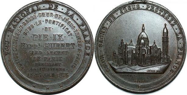P4752 France Médaille Sacré Coeur Paris Pie IX 1895 voeu Abadie Arche SUP