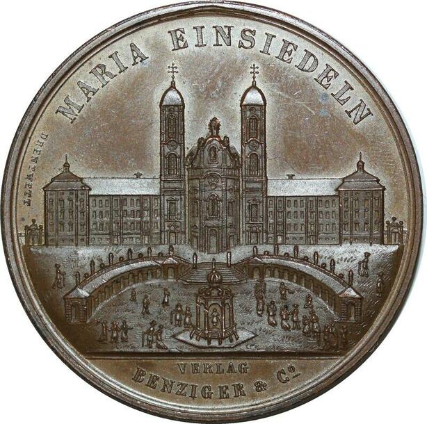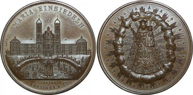P4777 Rare Schweiz Medal Maria Einsiedeln 1890 Benziger Drentwett UNC