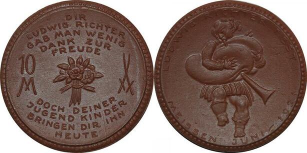 P4833 Germany 10 Marks Ludwig Richter Meissen 1921 BU UNC -> Make offer