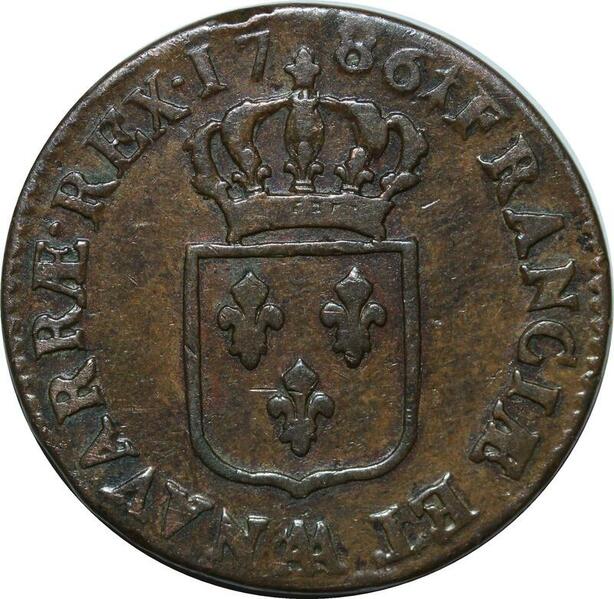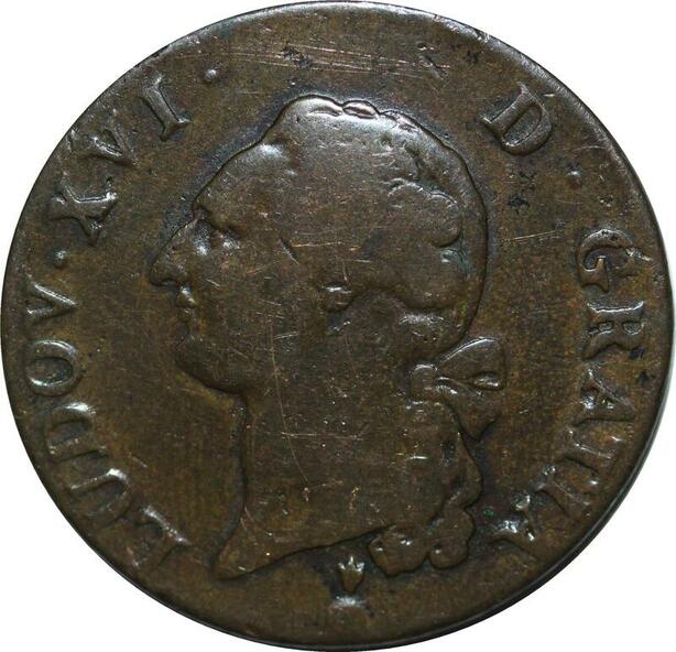 P4868 France Sol Louis XVI 1786 AA Metz avec une lettre derrière l'atelier