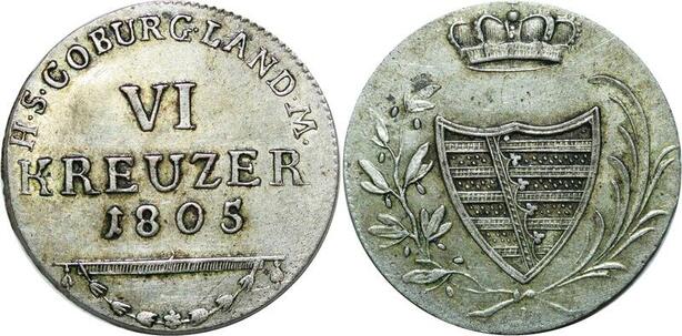 P4943 Germany Saxe Coburg Saalfeld 6 Kreuzer Franz Friedrich Anton 1805 AU+