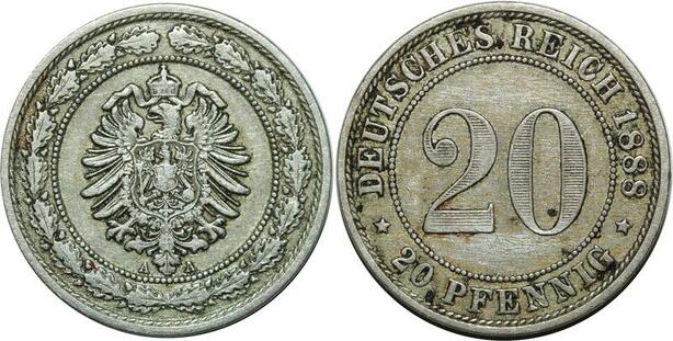 P4944 Germany Empire 20 Pfennig Wilhelm I 1888 A -> Make offer