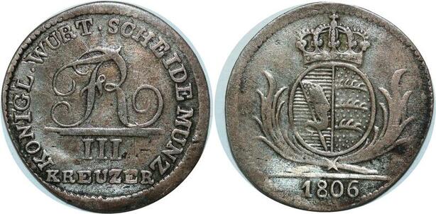 P4947 Germany Württemberg 3 Kreuzer Friedrich II 1806 W Silver -> Make offer