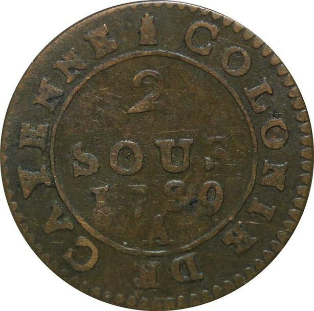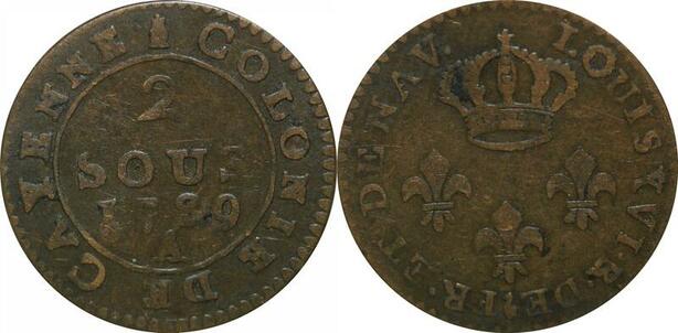 P5091 Guyane Colonies Cayenne 2 Sous Louis XVI 1789 A Paris -> Make offer