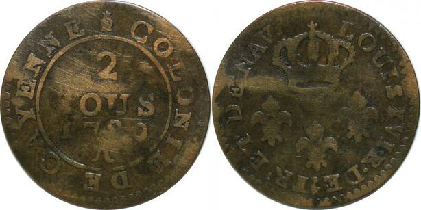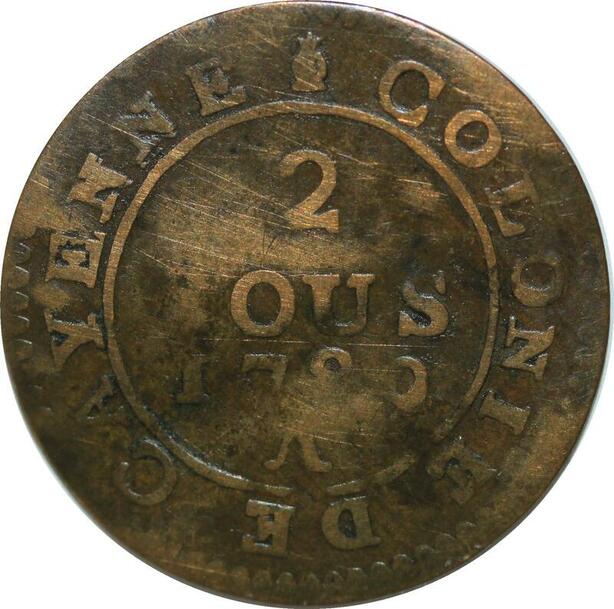 P5092 Guyane Colonies Cayenne 2 Sous Louis XVI 1789 A Local mint -> Make offer