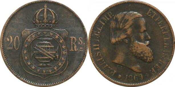 P5101 Brazil Bresil 20 Reis Empereur Pierre II 1869 -> Make offer
