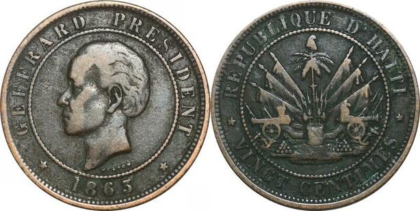 P5104 Haiti 20 Centimes Geffrard President 1863 Heaton -> Make offer