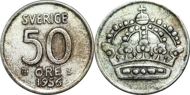 P5116 Sweden 50 Ore Gustaf VI 1956 TS Silver -> Make offer