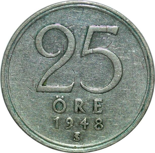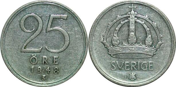 P5123 Sweden 25 Ore Gustaf V 1948 TS Silver XF -> Make offer