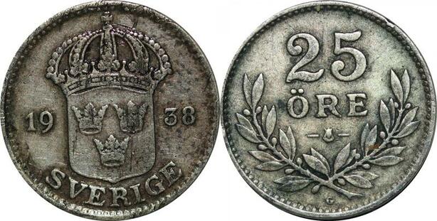 P5127 Sweden 25 Ore Gustaf V 1934 G Silver -> Make offer