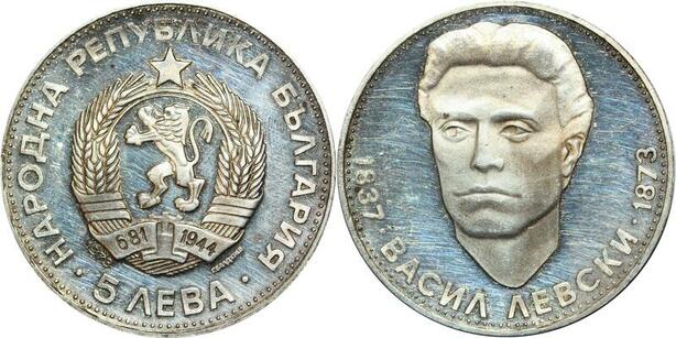 P5128 Bulgaria 5 Leva 100 Years Wassil Lewski 1973 Silver Proof -> M offer