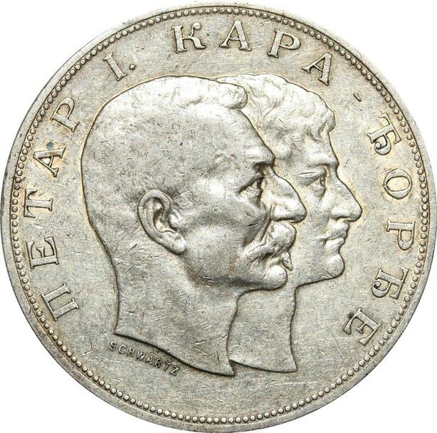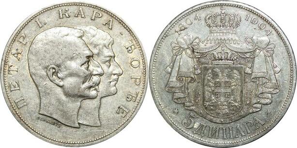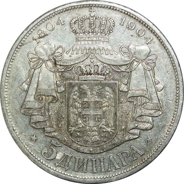 P5135 Serbia 5 Dinara Peter I Karadordevi 1904 Silver AU +++ -> Make offer