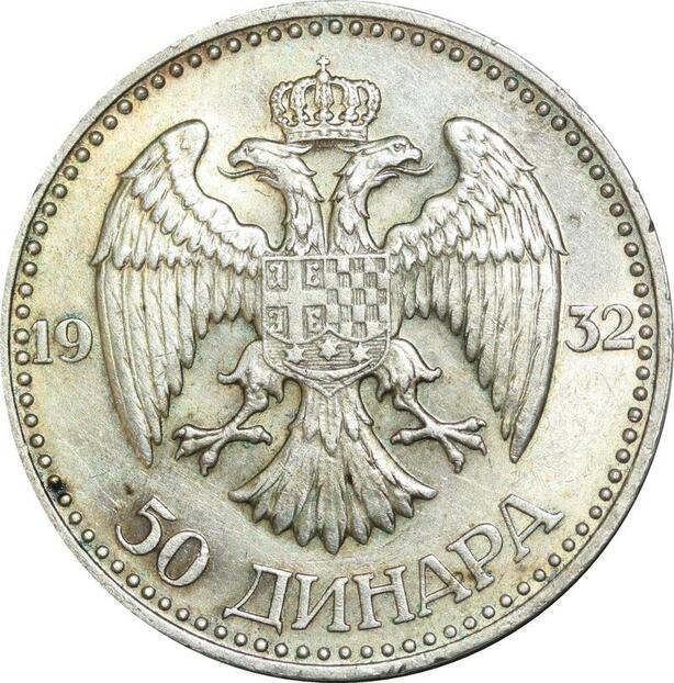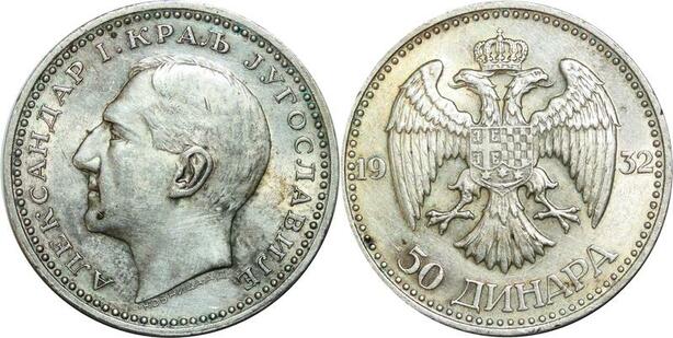 P5136 Yugoslavia 50 Dinara Alexander I 1932 Kovnica Silver AU ++ -> Make offer