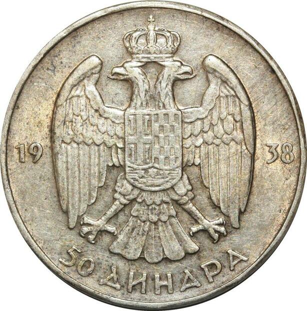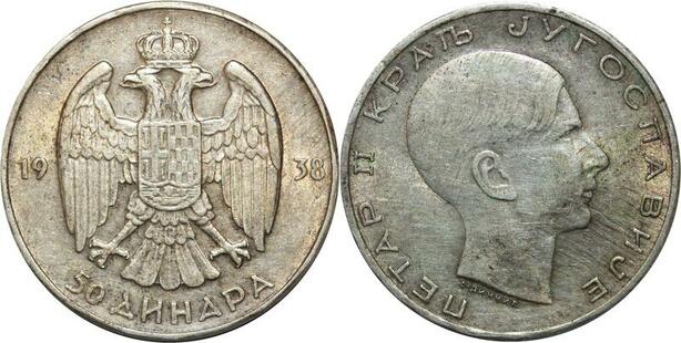P5142 Jugoslawien Yugoslavia 50 Dinara Peter II 1938 Silver -> Make offer