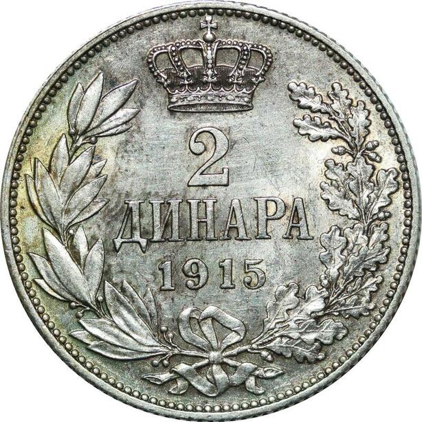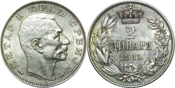 P5145 Serbia 2 Dinara Peter I 1915 A Silver UNC -> Make offer