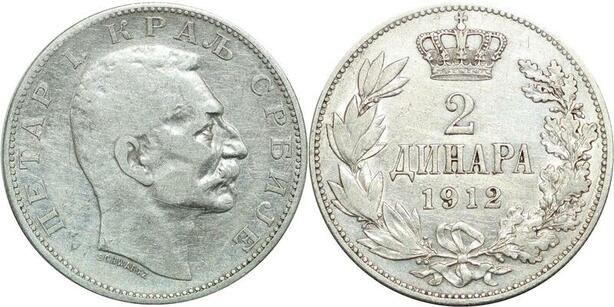 P5150 Serbia 2 Dinara Peter I 1912 Silver -> Make offer