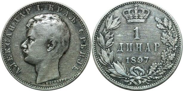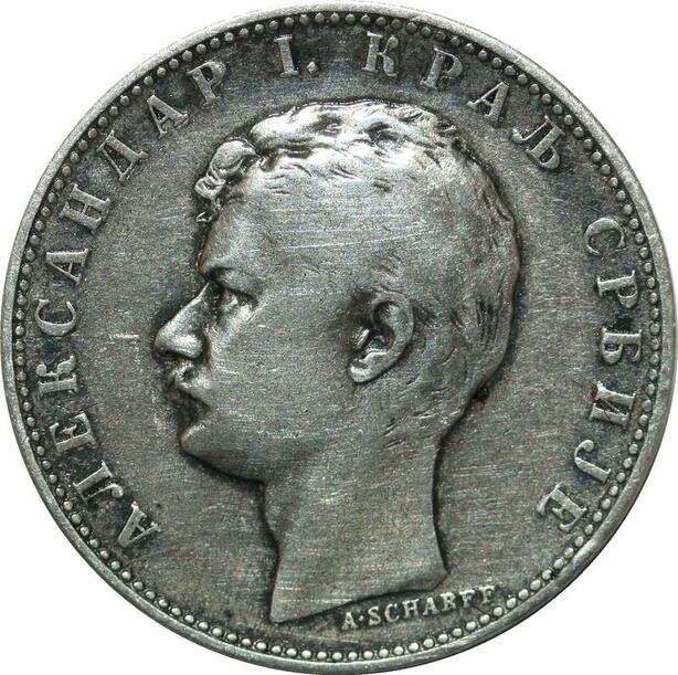 P5156 Serbia Dinar Alexander I 1897 Silver -> Make offer