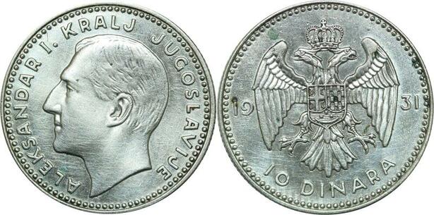 P5160 Yugoslawien 10 Dinara Alexander I 1931 Silver AU -> Make offer