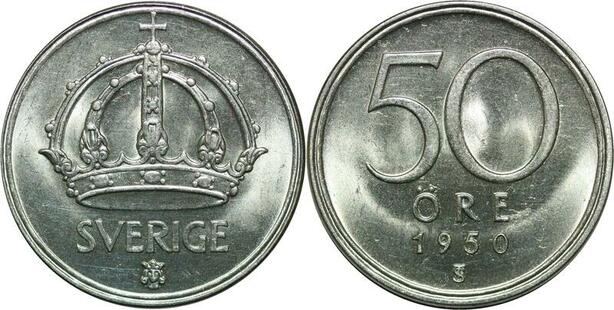 P5166 Sweden 50 Öre Gustav V 1950 TS Silver BU UNC -> Make offer