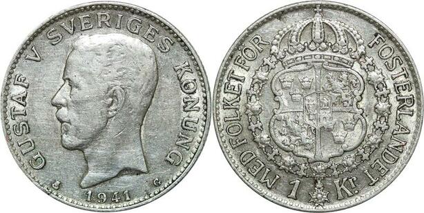 P5170 Sweden Krona Gustav V 1941 G Silver -> Make offer