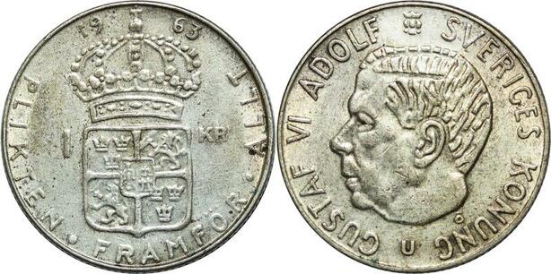 P5175 Sweden Krona Gustav VI 1963 U Silver -> Make offer