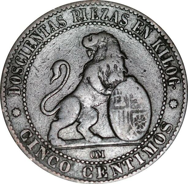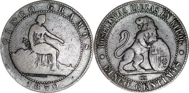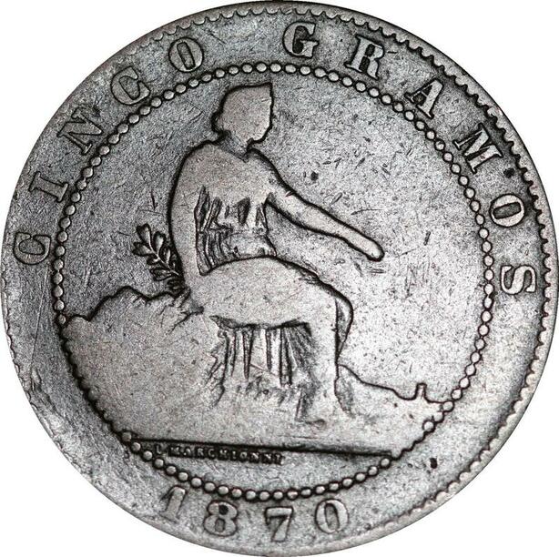 P5176 Spain 5 Centimos Provisional Government 1870 OM -> Make offer