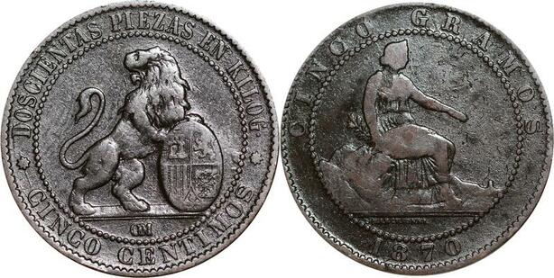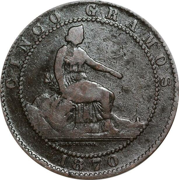 P5182 Spain 5 Centimos Provisional Government 1870 OM -> Make offer