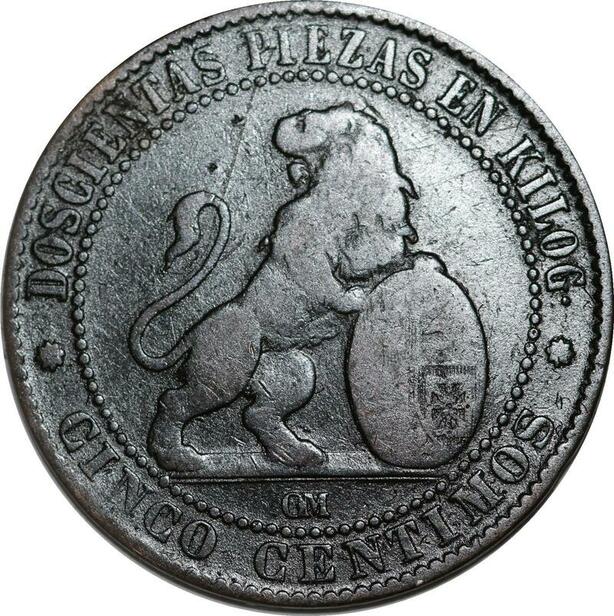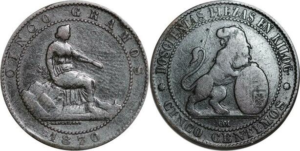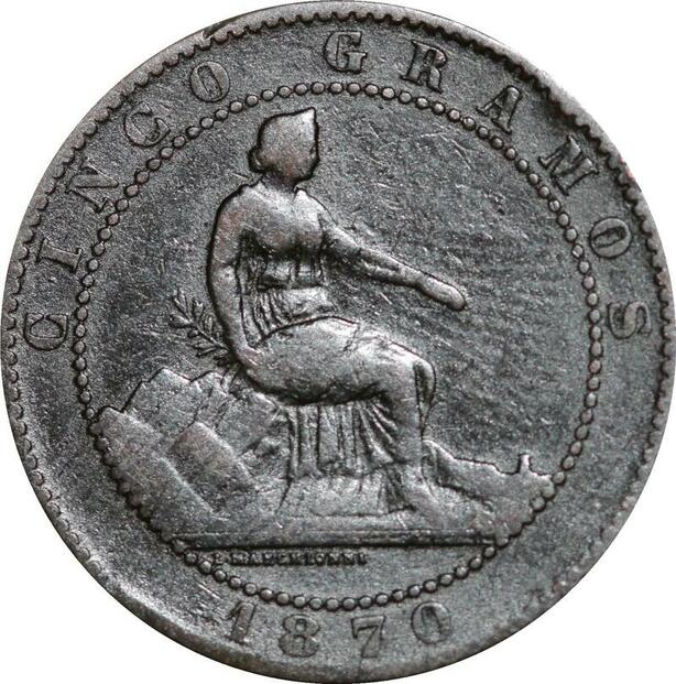 P5183 Spain 5 Centimos Provisional Government 1870 OM -> Make offer
