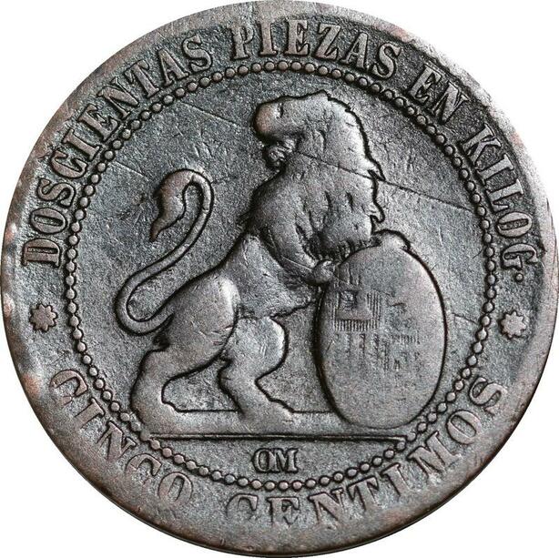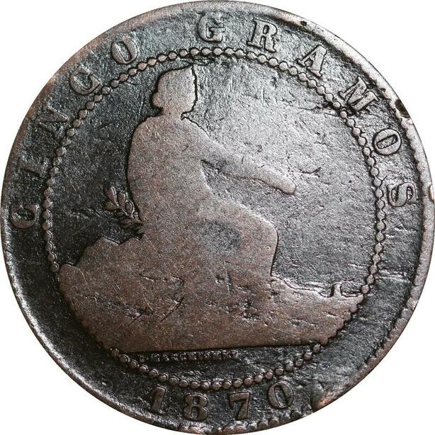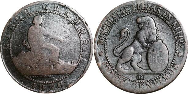 P5184 Spain 5 Centimos Provisional Government 1870 OM -> Make offer