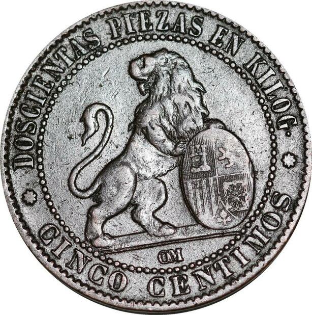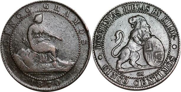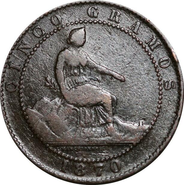 P5185 Spain 5 Centimos Provisional Government 1870 OM -> Make offer